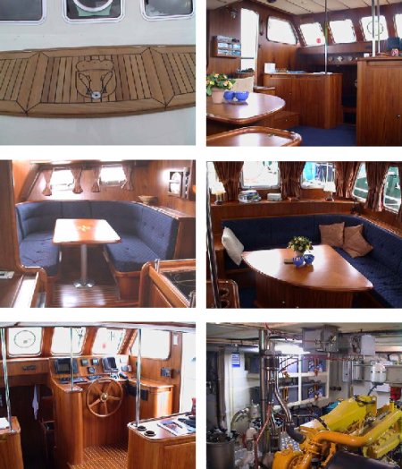 | Ca. 14,45m x 4,96m, Tiefgang: 1,60m, Baujahr: 1999, 175PS John Deere 6068 Diesel, 6 Schlafplätze, gut ausgerüstet, CE Klasse B, Material: Stahl, Code: H |
