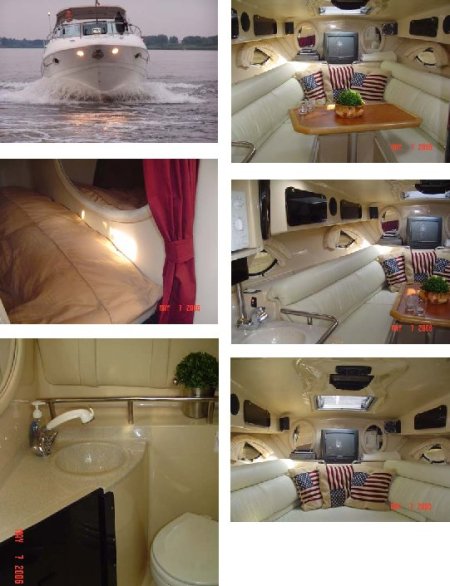 | Ca. 8,48m x 2,67m, Tiefgang: 0,45m, Baujahr: 1998, 270PS Mercruiser 7.3L-D-tron Diesel (6 Zyl.), 4/6 Schlafplätze, Bugstrahlruder, Material: GFK, Code: H |