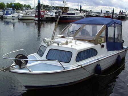 | Ca. 5,8m x 2,0m, 30PS Johnson Außenborder, 2 Schlafplätze, Sat. Anlage, Material: GFK, Code: M |