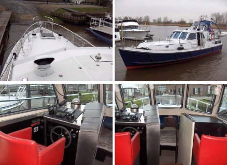 | Ca. 12,50m x 3,66m, Tiefgang: 1,2m, 2 x 280PS Cummins 6 Zylinder Diesel, 4 Schlafplätze, Teakdeck, Bugstrahlruder, Material: GFK, Code: H |