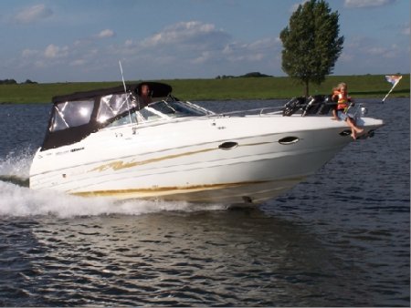 | Ca. 8,48m x 2,67m, Tiefgang: 0,45m, Baujahr: 1998, 270PS Mercruiser 7.3L-D-tron Diesel (6 Zyl.), 4/6 Schlafplätze, Bugstrahlruder, Material: GFK, Code: H |