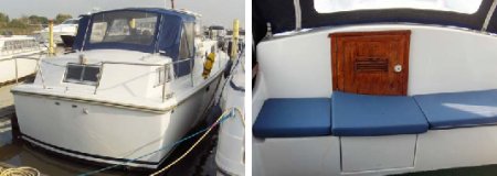 | Ca. 10,00m x 3,20m, Tiefgang: 0,90m, Baujahr: 1971, 2 x 80PS Perkins 4 Zylinder Diesel, 6 Schlafplätze, guter Zustand, 2 Motoren, Material: GFK, Code: H |