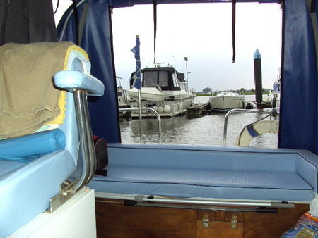 | Ca. 8,00m x 2,60m, 40PS Johnson Außenborder, 4 Schlafplätze, Material: GFK, Code: M |