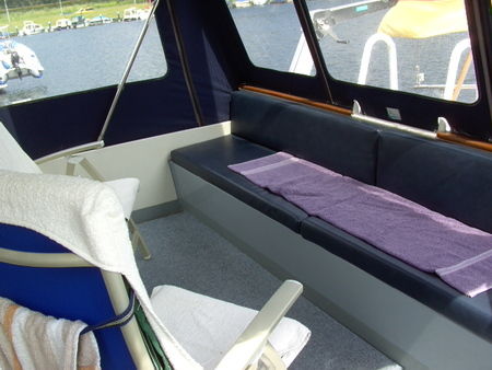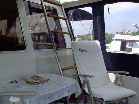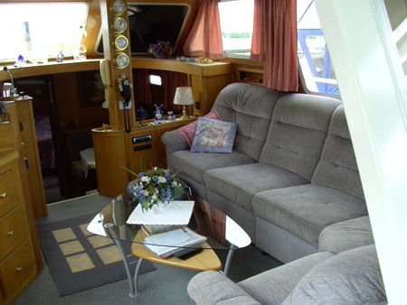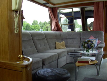 Salon mit Steuerstand und großer Sitzecke