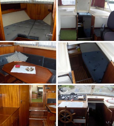 | Ca. 9,30m x 3,20m, Tiefgang: 0,9m, Baujahr: 1978, 2 x 124PS Volvo 6 Zyl. Diesel, 4 Schlafplätze, zwei Motoren, Material: GFK, Code: H |
