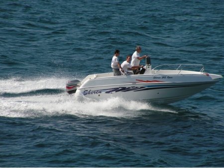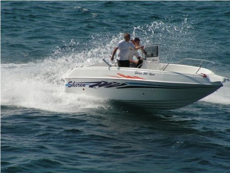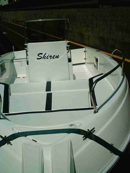 Abmessungen: 5,98m x 2,28m, Material GFK, Motorisierung mit Außenborder